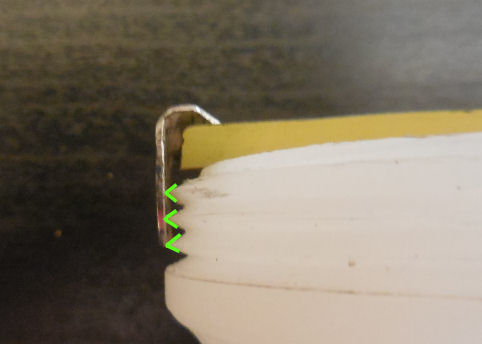 POZOR ! Zásek (zobáček na metru) musí být opřený o profil závitu !